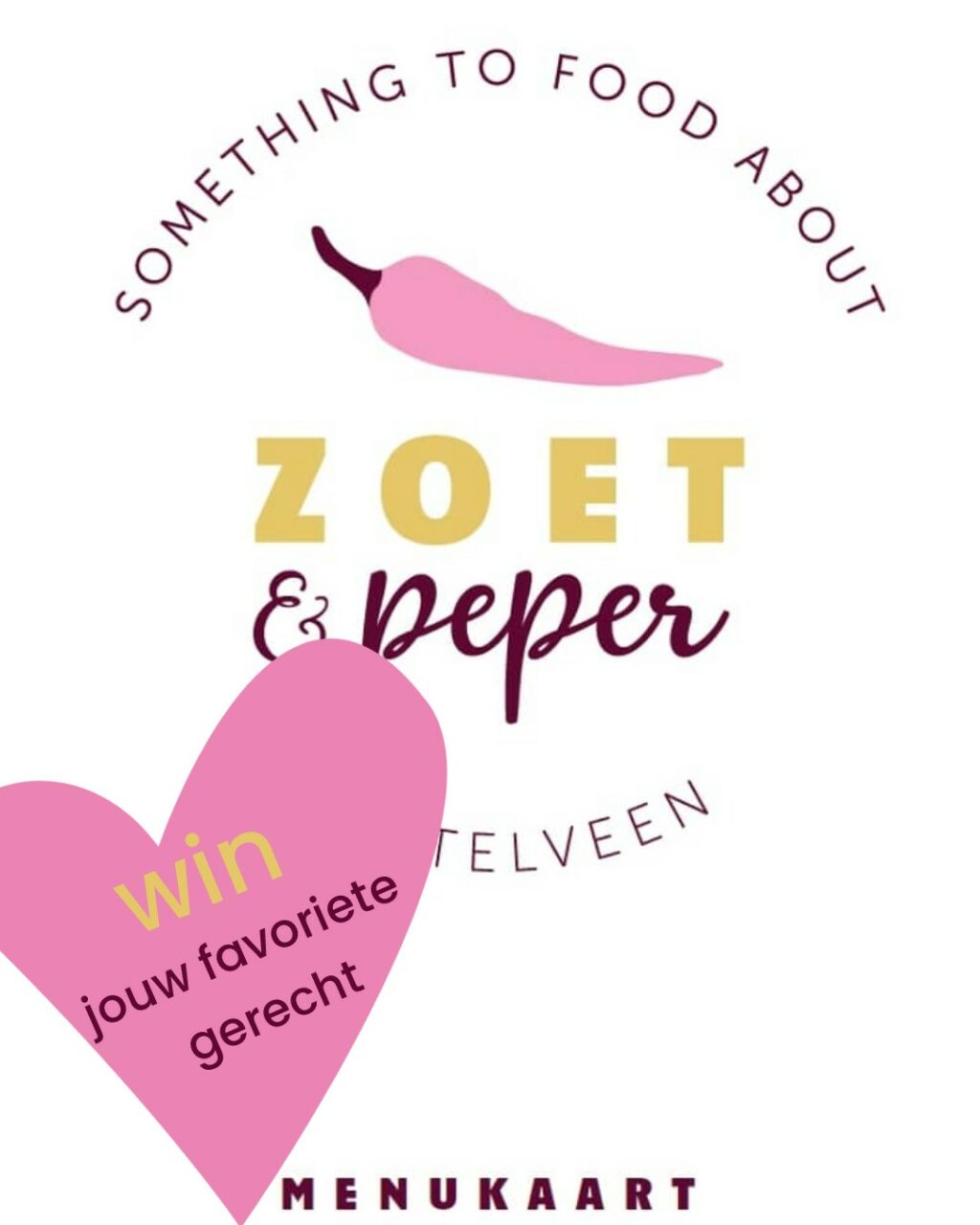 • Hebben wij jouw gerecht gekozen, dan mag jij dit gerecht gratis komen afhalen bij Zoet & Peper voor jou en jouw gezin (max. 4 personen). Ook staat dit gerecht voor deze week op het menu, zodat iedereen dit kan bestellen.